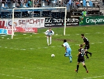 Christian Kouakou est en phase d’échauffement pour la suite avec ce tir ou il ne s’en faut que d’un fil pour qu’il n'aille au fond du filet.
